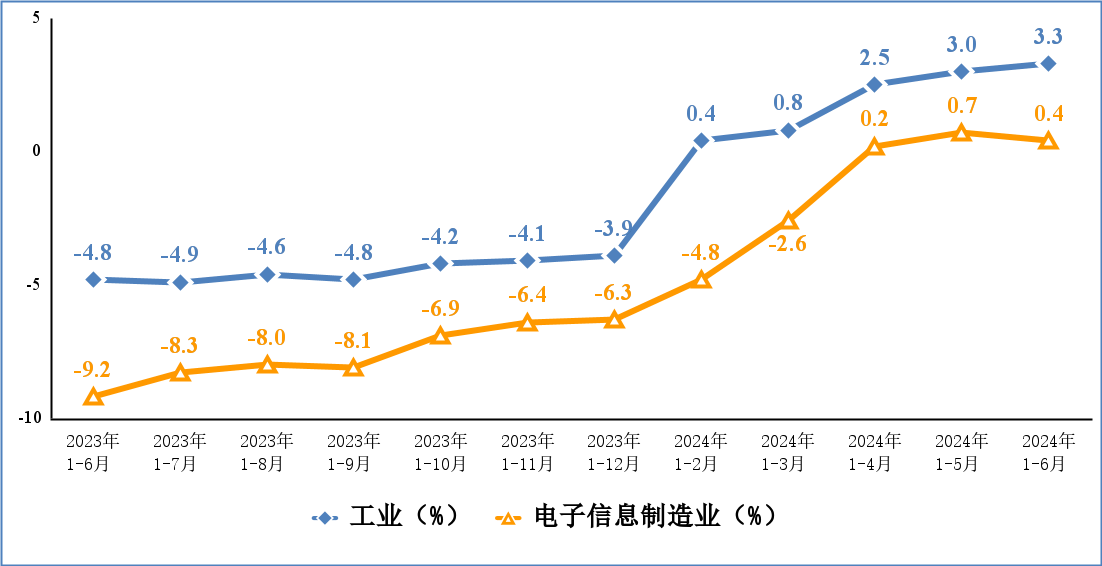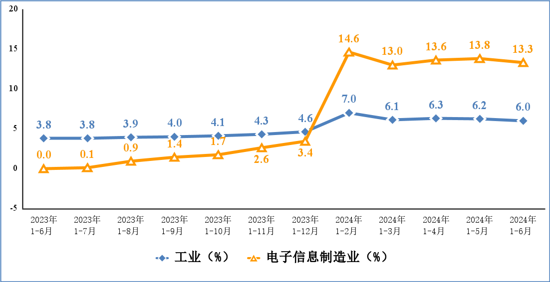 上半年,規模以上電子信息制造業增加值同比增長13.3%,增速分別比同期工業、高技術制造業高7.3個和4.6個百分點。6月份,規模以上電子信息制造業增加值同比增長11.3%。