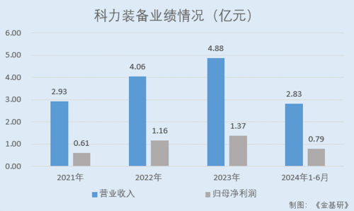 2021-2023年及2024年1-6月,科力裝備的營業收入分別為2.93億元、4.06億元、4.88億元、2.83億元,2021-2023年CAGR為29.02%;歸母凈利潤分別為0.61億元、1.16億元、1.37億元、0.79億元,2021-2023年CAGR為50.24%。