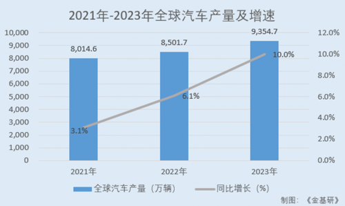 受汽車市場恢復等因素推動,近年來全球汽車產業景氣度回升。據OICA(世界汽車組織)數據,2021年-2023年,全球汽車產量分別為8,014.6萬輛、8,501.7萬輛、9,354.7萬輛,同比分別增長3.1%、6.1%、10.0%。