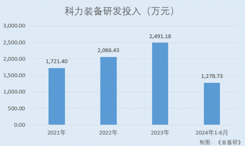2021-2023年及2024年1-6月,科力裝備研發投入金額分別為1,721.40萬元、2,066.43萬元、2,491.18萬元、1,278.73萬元,占各期營業收入的比例分別為5.87%、5.09%、5.11%、4.52%。其中,2024年上半年,科力裝備研發投入同比增長18.08%。