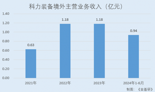 2021-2023年及2024年1-6月,科力裝備境外主營業務收入分別為0.63億元、1.18億元、1.18億元、0.94億元,整體呈上升趨勢。
