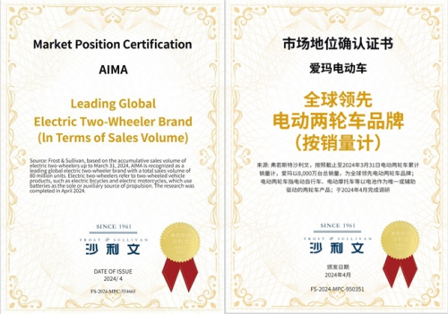 可以說,躋身《電動自行車行業規范條件》“白名單”,反映了國家有關部門對于愛瑪電動車的高度肯定,同時,能夠體現出業界對于愛瑪產品與品牌認可的佐證也屢見不鮮。就在今年,愛瑪科技多次斬獲重量級大獎,涉及國際、服務、品牌等多個領域。2024C-BPI(中國品牌力指數),愛瑪科技連續13次蟬聯中國電動自行車行業品牌力第一名;福布斯中國-年度好品牌TOP 50,行業首家斬獲“領跑者”殊榮;獲得CTEAS售后服務體系完善程度七星級認證,彰顯卓越級服務品質;榮膺沙利文認證-全球領先電動兩輪車品牌,全球銷量領先;多次被評為品牌強國·標準化規范建設單位、品牌強國·全面智能化產品企業、品牌強國·行業時尚先鋒企業,以高度的品牌權威性贏得業界及廣大消費者的尊重與認可。凡此種種,無不昭示著愛瑪科技不僅推動了綠色出行的普及,更為整個電動車行業的轉型升級樹立了新的標桿。