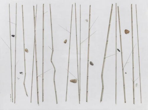 竹、石、藤、小草既是四季中的常見(jiàn)之物,也是炎黃子孫的精神密碼。吳笛笛所繪的草、藤蔓、樹(shù)木、苔蘚與竹子等植物有著不同的意義,而她也根據(jù)其不同的意義進(jìn)行創(chuàng)作。清代文學(xué)家鄭燮有詩(shī)云,“咬定青山不放松,立根原在破巖中。千磨萬(wàn)擊還堅(jiān)勁,任爾東西南北風(fēng)。”而在吳笛笛眼里,這一草一木能生長(zhǎng)于貧瘠的巖石,皆有著頑強(qiáng)的生命力和不屈不撓的精神,值得我們學(xué)習(xí)。