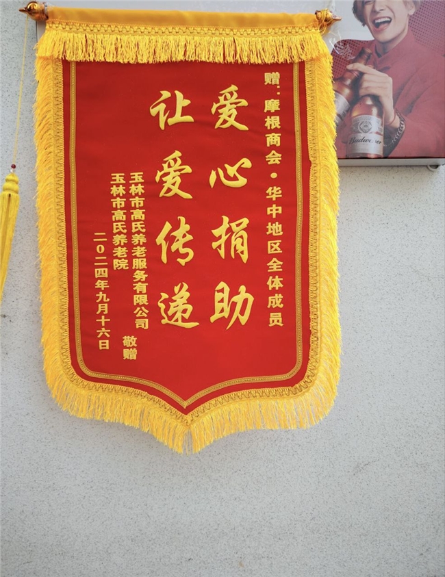 玉林市玉州區高氏養老院贈摩根商會華中區何麗團隊錦旗
