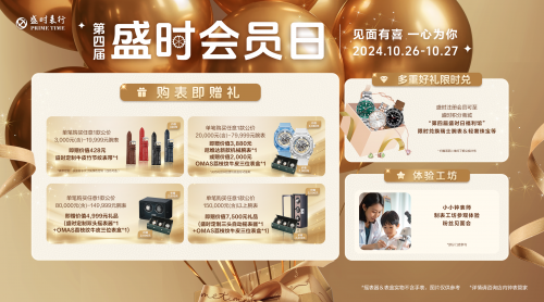 為回饋廣大會員的支持與厚愛,盛時特推出“第四屆盛時日福利館”,會員可憑借積分在商城內限時兌換限量豪禮。此次積分兌換活動涵蓋了瑞士腕表品牌及知名飾品品牌,旨在讓會員在享受購物樂趣的同時,也能感受到盛時的貼心關懷。