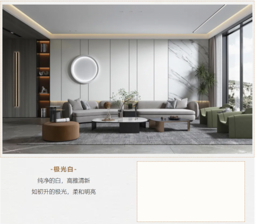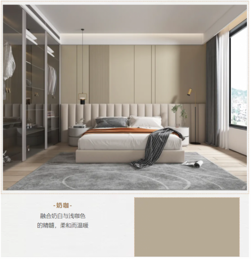 PET純色系列顏色準確,顏值與品質兼具。PET百搭純色共有20余款,手感細膩,色彩亮麗、顯色真實,分為膚感系列、高光系列,工藝有別,質觸感均好,符合輕奢極簡、奶油風裝修風格。