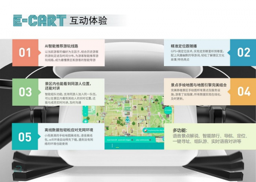 E-cart智游車憑借其智能化的特性,讓旅游出行變得更加便捷與高效。智能代步車語音對講系統(tǒng)、云平臺(tái)信息管理系統(tǒng)、交互式智能配對位置信息共享系統(tǒng)等軟著成果的應(yīng)用,使得游客在旅途中可以實(shí)時(shí)獲取路況信息、與同行者保持緊密聯(lián)系,甚至參與趣味橫生的社交游玩互動(dòng)。這些智能功能不僅提升了旅游的安全性與趣味性,還極大地豐富了游客的旅行體驗(yàn)。