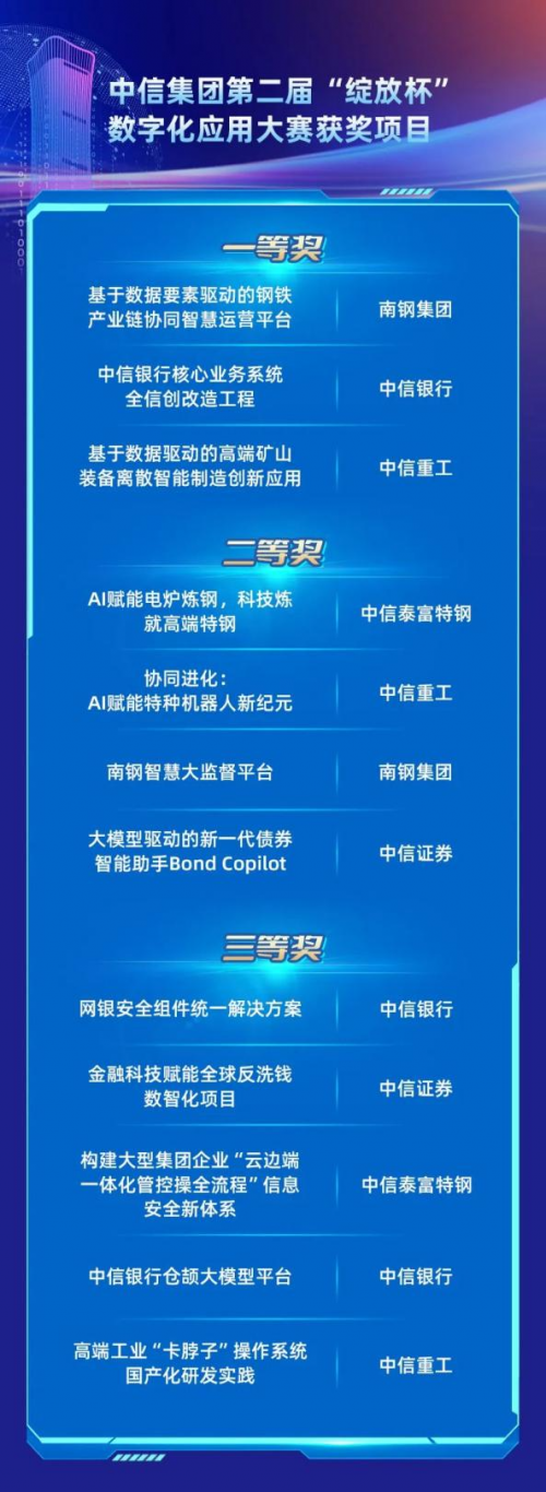 中信集團舉辦第二屆“綻放杯”大賽,多領(lǐng)域數(shù)字化應(yīng)用達到行業(yè)領(lǐng)先水平