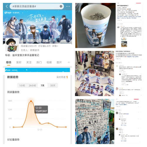 近日,益禾堂與《盜墓筆記》的聯(lián)名活動在全國范圍內(nèi)掀起了一股熱潮,各大主題門店紛紛迎來了爆單盛況,銷售數(shù)據(jù)一路飆升,聯(lián)名上線4天,杯量突破141萬杯,小紅書有關(guān)聯(lián)名筆記超4000+,微博閱讀量超2300萬,其中,12月20日,微博單日閱讀量破1700萬+。此次跨界合作不僅吸引了雙方的忠實粉絲,更激發(fā)了廣大消費者的濃厚興趣,成為這個冬日里最耀眼的明星。