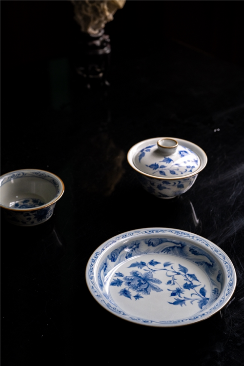 其釉水采用瑪瑙玉石入釉,并傳承傳統柴窯技藝。燒制之器含鐵量高,極為溫潤。天青色有“無中生水、色如清煙”的效果。與儒釋道經典、茶文化融為一體。其造型典雅古樸,線條簡潔流暢,氣韻生動傳神,既有型與藝術家創作的畫面以及老師傅的紋飾相協調,又有渾然天成的溫潤如真玉的釉面,兼具實用性與觀賞性。