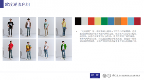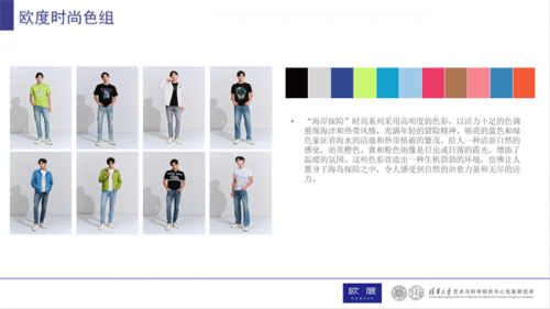 對于追求時髦前衛風尚的型男來說,暖春造型少不了顏色亮麗又大膽的單品。圍繞“海岸探險”主題進行研發的時尚/潮流風格就采用了高明度的色彩組合。比如明亮的藍色、綠色,給人一種清新自然的感覺,活力的亮橙色、黃和粉色則像是日出或日落的霞光,增添溫暖氛圍。這些色彩巧妙地在歐度2025春夏產品中進行了拼接與撞色,給穿著者營造出一種年輕感、活力感十足的視覺體驗,仿佛讓人置身于海島探險之中,令人感受到自然的治愈力量和無盡活力。
