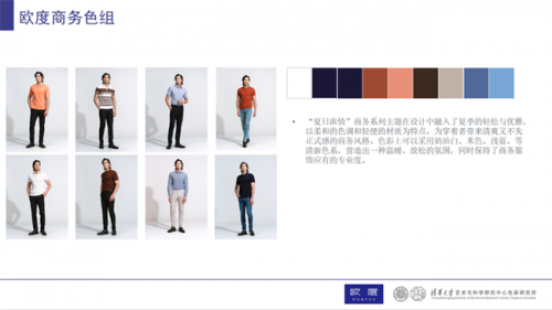 以“夏日濃情”為主題的歐度商務風格搭配,在設計中融入了夏日季節特有的輕松與優雅。采用了更加柔和的色調和輕便的面料材質,為都市精英帶來清爽又不失正式感的商務造型。