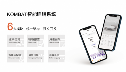 集成開發的用戶APP,是KOMBAT智能床的智慧大腦。通過APP,用戶可以輕松查看詳細的睡眠報告,了解自身睡眠習慣與健康狀況。同時,APP還能根據監測數據,智能推薦個性化的睡眠改善建議,讓每一次躺下都成為一次向健康邁進的旅程。