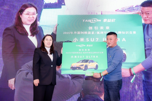 發(fā)布會已圓滿落幕,隨后進行了媒體采訪、自由攝影以及雞尾酒會等活動,為與會者提供了一個充分的交流與互動平臺。當(dāng)晚,一場盛大的晚宴順利舉行,通過《品牌知識競賽抽取神秘大獎》活動,進一步加深了與會各方對泰益欣品牌的認識與理解。在知識競賽中確定了抽獎嘉賓,并以公平、公正、透明的方式抽取了神秘大獎。最終,南京嘉綠化工有限公司榮獲了神秘大獎——價值529900元的小米su7ultra汽車一輛。