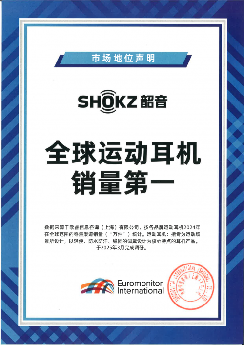 IDC數(shù)據(jù)顯示,韶音在2024年中國(guó)開放式耳機(jī)市場(chǎng)繼續(xù)領(lǐng)跑行業(yè),占據(jù)銷售額第一的位置。同時(shí),歐睿最新數(shù)據(jù)報(bào)告顯示,2024年韶音登頂全球運(yùn)動(dòng)耳機(jī)銷量第一,這也是韶音連續(xù)第二年登頂。這一系列成績(jī)不僅是對(duì)韶音產(chǎn)品品質(zhì)的高度認(rèn)可,更是其在全球市場(chǎng)站穩(wěn)腳跟的有力證明。