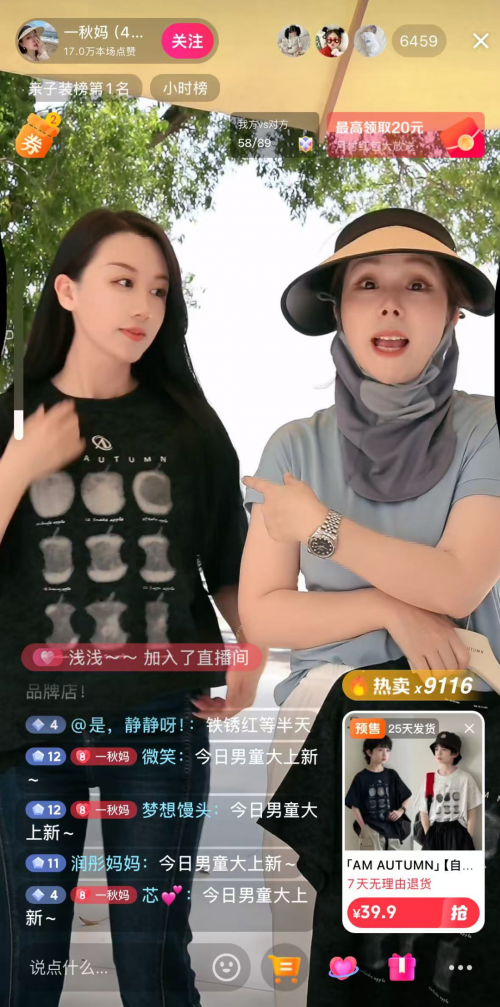 ● 主理人輸出專業內容,深度種草促轉化。童裝品牌麥麥秋品牌主理人@一秋媽 ,在戶外專場直播中,細致講解品牌理念,為用戶娓娓道來防曬衣、褲的設計思路,并根據用戶的不同使用場景提供搭配建議,滿足不同消費者的穿搭需求穿搭需求。