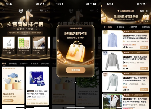 在商城側,抖音商城為品牌設置超值購、UG發券等資源,吸引“精打細算”的用戶下單防曬好物;打造“防曬運動戶外好物趨勢金榜”,為用戶提供春日防曬選購指南喚醒用戶消費興趣,推動商家收獲生意增長勢能。