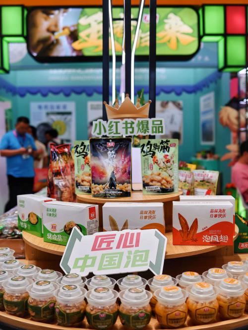 作為“鳳爪專家”,有友食品并未止步于泡鳳爪這一主推品類。此次參展,其展臺涵蓋泡椒鳳爪、豬皮晶、脫骨鴨掌、雞腳筋等多元化產(chǎn)品矩陣,覆蓋了不同消費場景和口味偏好,這種多元化的產(chǎn)品策略,既滿足了現(xiàn)有消費者的需求,也吸引了更多優(yōu)質(zhì)渠道和年輕群體的關(guān)注。