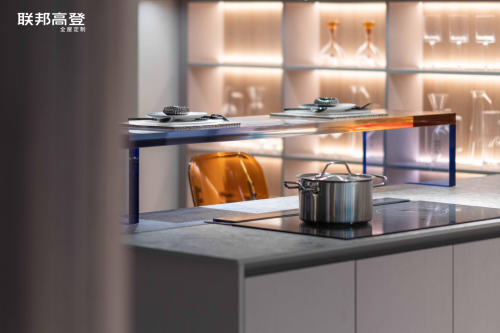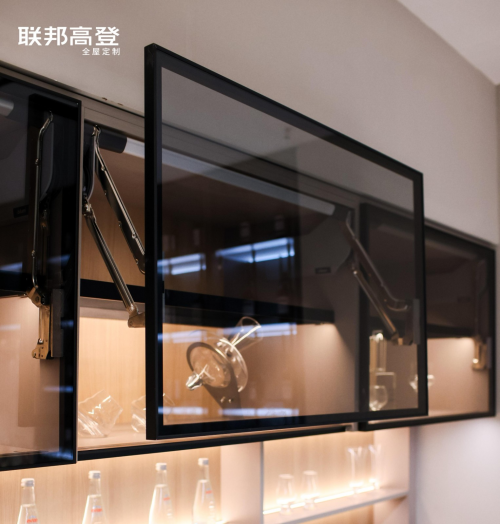 以聯(lián)邦高登的多功能餐廚玻璃柜為例,規(guī)劃了半封閉式與開放式收納區(qū),亞克力板與金屬支架的交叉碰撞,又通過玻璃的折射特性放大空間通透感。柜體內(nèi)部分區(qū)采用模塊化設(shè)計,可調(diào)節(jié)層板與隱形燈帶系統(tǒng)靈活適配紅酒、餐具、調(diào)味品等不同物品的陳列需求,讓收納升華為藝術(shù)展陳。這種對材質(zhì)特性與功能需求的精準(zhǔn)平衡,彰顯著聯(lián)邦高登對高定空間定制設(shè)計的深厚專業(yè)沉淀。