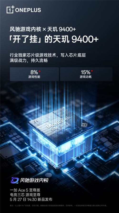 核心提示:5月21日,一加官方宣布,一加 Ace 5 至尊版搭載天璣9400+旗艦芯片,首次將自研芯片級游戲技術風馳游戲內核引入天璣平臺。5月21日,一加官方宣布,一加 Ace 5 至尊版搭載天璣9400+旗艦芯片,首次將自研芯片級游戲技術風馳游戲內核引入天璣平臺。在天璣9400+旗艦性能芯和風馳游戲內核的加持下,一加 Ace 5 至尊版,和在無限滿幀之上,更帶來行業最強1%Low幀表現,挑戰0掉幀,游戲體驗刷新行業新上限。