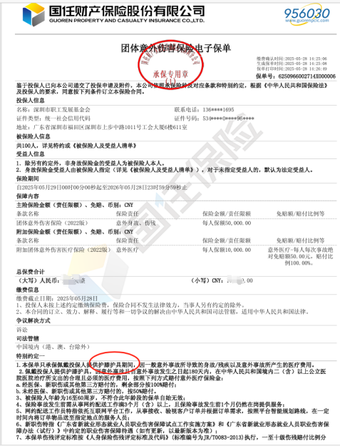 除此之外,拓必得給每位受贈者額外加贈了一份由國任保險公司承保的意外險“護膝保”保單: