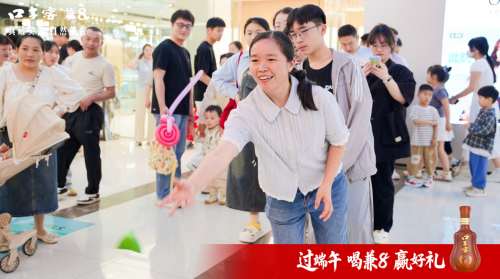 活動現場不僅設置 “一躍安康” 跳遠挑戰、“瘋狂的粽子” 沙包投擲等趣味闖關游戲,還精心布置美陳打卡點,融入艾草、香囊、燈籠等傳統元素,而手持 “兼香安康” 燈籠的 IP 人偶 “兼小俠” 更是成為焦點,這位萌態可掬的品牌使者穿梭于商場,引得大家爭相拍照打卡并參與游戲。居民在參與中感受到濃郁的節日氛圍,同時讓口子窖 “真藏實窖自然兼香” 在心中深度扎根。正如市民王女士所言:"聞著艾草香玩游戲,拿著燈籠拍美照,原來白酒品牌的活動也能這么有文化味!"