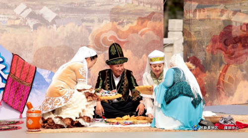當日活動在精彩的情景劇《絲路新章·阿禾公路上的婚禮》表演中拉開帷幕,身著傳統服飾的演員們用靈動的舞姿展現了阿勒泰地區獨特的民俗風情,讓現場觀眾深切感受非遺藝術的獨特魅力。