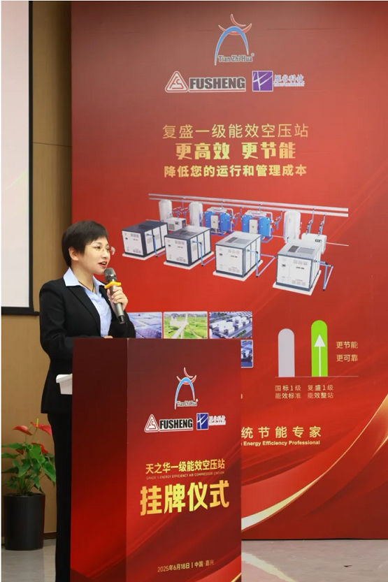 復盛集團代表金艷女士在發言中特別強調了與天之華的戰略合作,這四座一級能效空壓站正是基于對綠色發展的理念詮釋。