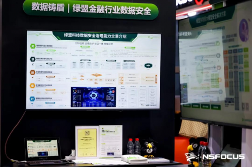 在數據安全方面,綠盟科技數據安全解決方案基于“數據安全管理合規、數據安全技防、數據安全運營”三階段的建設推進思路,結合金融機構數據安全現狀與合規要求,開展組織和制度體系建設、數據分類分級、數據安全風險評估等工作,并結合分類分級和評估結果完善和優化分級管控措施,有效提升金融機構數據保護能力。展會期間,綠盟科技數據安全專家現場與參展嘉賓就數據安全“兩辦法”解讀及落地經驗進行深入交流和探討。