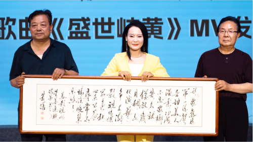 著名書法家肖印儒先生向詞作者,制片人姜進(jìn)女士贈(zèng)送書畫