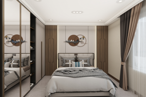 大平層的開闊尺度能承載太原晉美新概念裝飾設計有限公司全宅美裝的對稱布局與多層次設計。以客廳為核心,采用“中軸+兩側”布局:電視背景墻用微水泥仿磚雕紋樣,兩側對稱設置博古架,陳列晉派瓷器與現代藝術品;主臥套房借鑒“正房”概念,以床榻為中心劃分功能區,木質格柵隔斷替代實墻,既保留傳統禮序,又增強空間通透感;餐廳圓形實木餐桌搭配復刻晉派線條的現代餐椅,頂部仿燈籠造型的磁吸吊燈,讓傳統美學在扁平化空間中有序鋪陳。