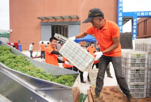 揭幕儀式后,等候在新酒廠外面的數百輛載滿水晶葡萄的車輛已排起長龍,車上坐著的彌勒果農臉上綻放出喜悅的微笑。首批 9 輛戴著大紅花的果農的車輛,在指令下緩緩駛入新酒廠,寓意“長長久久, 火火紅紅 ”。