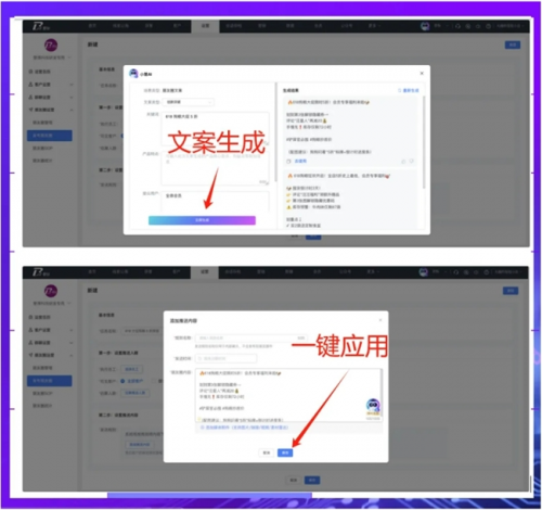 ・無(wú)縫銜接執(zhí)行:生成的朋友圈文案點(diǎn)擊 “發(fā)布” 直接同步至系統(tǒng)發(fā)布框,群發(fā)話術(shù)點(diǎn)擊 “應(yīng)用” 自動(dòng)填入客戶群發(fā)界面,省去復(fù)制粘貼環(huán)節(jié),創(chuàng)作到執(zhí)行 “零延遲”。