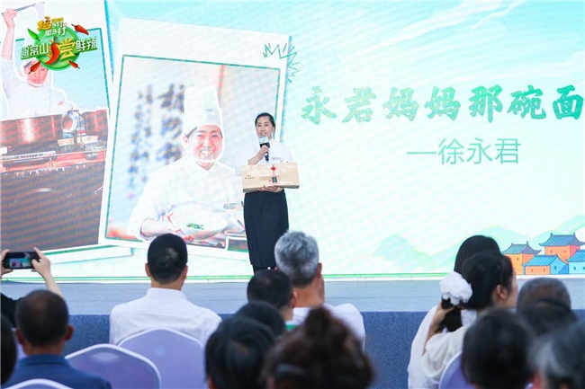 啟動儀式上,象征萬千風味源起的“灶火”造型裝置被瞬間“點燃”,“趣常山·嘗鮮辣”活動正式啟動,“鮮辣常山”推薦官“永君媽媽”登上舞臺,與大家分享一碗常山貢面背后的溫情故事。