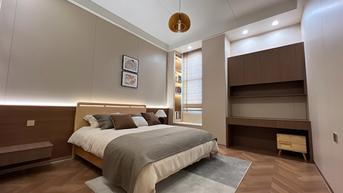 針對現(xiàn)代輕奢風格需求,設計師可選用碳晶板與金屬線條的組合,通過門墻柜一體同色技術,實現(xiàn)空間色彩與材質的無縫銜接;而中式風格的營造,則通過木紋、石紋與布紋系列板材的搭配,配合格柵、懸空背景墻等元素,還原傳統(tǒng)文化的意境之美。這種“先設計后生產”的模式,從根本上避免了傳統(tǒng)裝修中“東拼西湊”的雜亂感,讓家居空間成為有邏輯、有層次的美學整體。
