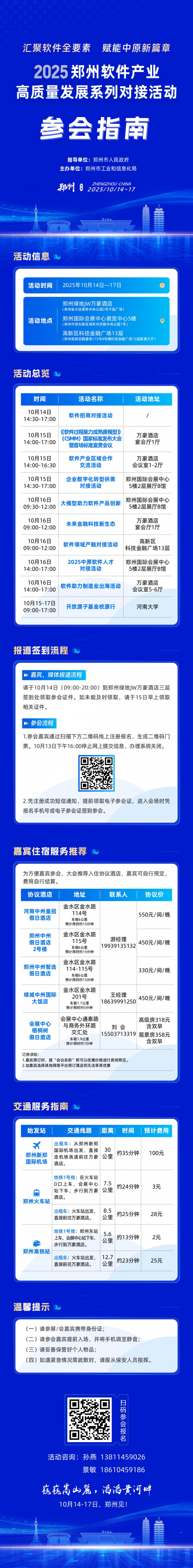 核心提示:軟件是數字經濟的核心驅動力,更是推動制造業智能化、網絡化升級的關鍵支撐。軟件是數字經濟的核心驅動力,更是推動制造業智能化、網絡化升級的關鍵支撐。近年來,我國高度重視軟件產業發展,持續加快打造開源開放生態,推動工業軟件突破,強化人工智能賦能,為建設制造強國、網絡強國和數字中國提供堅實支撐。在此背景下,扎實推進軟件產業高質量發展,不僅關乎區域經濟轉型升級,更對鞏固提升國家產業鏈供應鏈韌性與安全具有重大意義。為深入貫徹落實國家軟件產業高質量發展戰略,助力打造中部地區軟件創新策源地和產業集聚新高地,“2025鄭州軟件產業高質量發展系列對接活動”將于10月14日至17日在鄭州隆重舉辦。