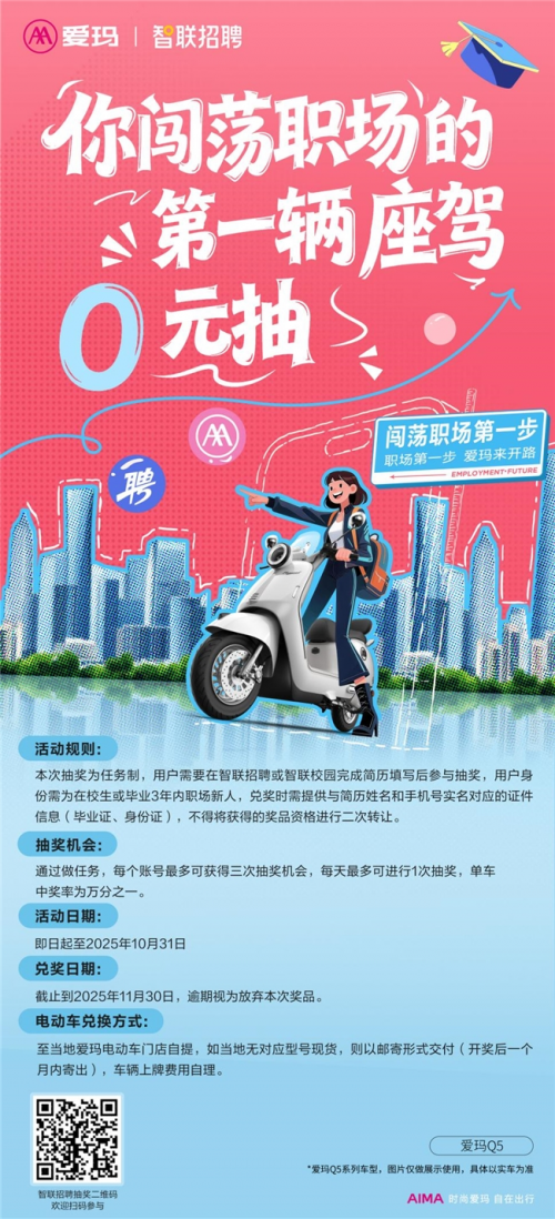核心提示:金秋十月,又是一年畢業(yè)招聘季到來。隨著2025、2026屆全國(guó)高校畢業(yè)生規(guī)模的持續(xù)走高,在“最卷畢業(yè)季”成為年度關(guān)鍵詞的當(dāng)下,無論是求職端的Z世代畢業(yè)生,還是用人端的多元化企業(yè),都在期盼著更多“從課桌到職場(chǎng)”雙向溝通渠道的建立。金秋十月,又是一年畢業(yè)招聘季到來。隨著2025、2026屆全國(guó)高校畢業(yè)生規(guī)模的持續(xù)走高,在“最卷畢業(yè)季”成為年度關(guān)鍵詞的當(dāng)下,無論是求職端的Z世代畢業(yè)生,還是用人端的多元化企業(yè),都在期盼著更多“從課桌到職場(chǎng)”雙向溝通渠道的建立。也正是有鑒于此,作為以品牌年輕化為重要發(fā)展戰(zhàn)略的電動(dòng)兩輪車行業(yè)頭部企業(yè),近期,愛瑪攜手智聯(lián)招聘,以一場(chǎng)別開生面的“闖蕩職場(chǎng)第一步”活動(dòng),使廣大求職畢業(yè)生感受到了關(guān)注與溫暖,以實(shí)際行動(dòng)助力年輕求職者邁出堅(jiān)實(shí)的“職場(chǎng)第一步”。