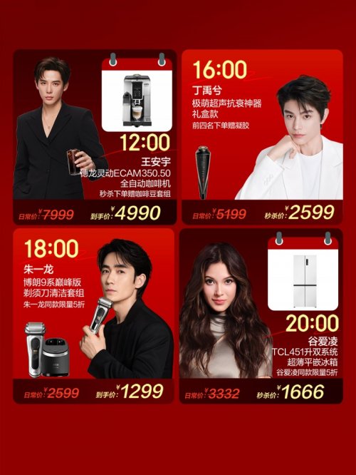 本次超級秒殺日從10月30日0點起,設(shè)置多個黃金秒殺時段,不同時段福利不重樣,確保消費者能精準鎖定心儀商品。比如,早上8點,任嘉倫同款美麗雅密實袋套裝率先開搶,購買即附贈專屬周邊;中午12點,明星王安宇推薦的德龍咖啡機開放秒殺,秒殺價直降上千元,還額外贈送咖啡豆套組,讓你在家就能輕松享受專業(yè)級咖啡體驗。