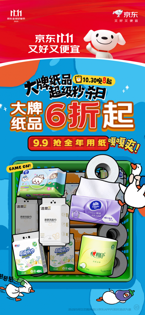 核心提示:10月31 日,京東11.11大牌紙品超級秒殺日開啟,為消費者帶來了一場超值的紙品搶購狂歡。10月31 日,京東11.11大牌紙品超級秒殺日開啟,為消費者帶來了一場超值的紙品搶購狂歡。活動期間,消費者不僅有機會以9.9元的價格搶購全年用紙,更有多輪1 元秒殺活動,讓消費者能用更低的價格搶購紙品。本次超級秒殺日的1元秒殺活動共有4場,分別在10月30日20點、10 月 31 日 0 點、10月31日10點和10月31日20點準時開啟。心相印抽紙、維達濕廁紙、得寶手帕紙、清風掛抽廚房紙等日常爆款紙品,以及卡皮巴拉抽紙、線條小狗聯名、哪吒 2洗臉巾、黃油小熊懸掛洗臉巾等熱門IP款紙品,都參與1元秒殺活動,供消費者搶購。