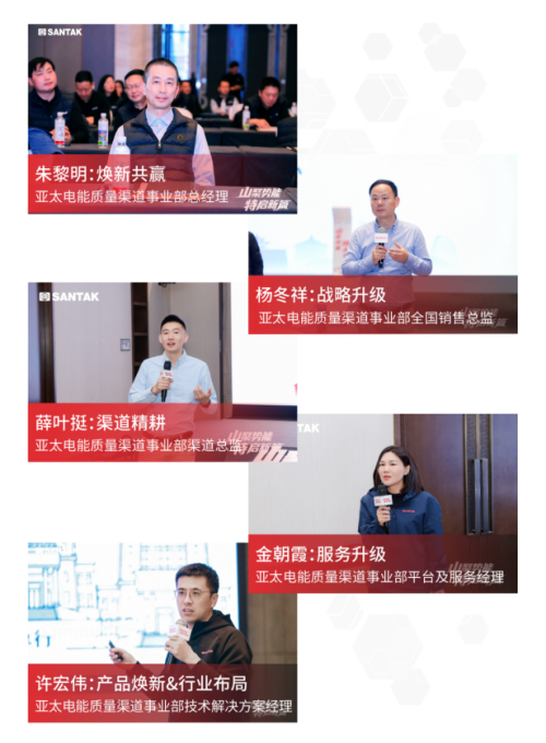 在會議中,亞太區電能質量渠道事業部總經理朱黎明、亞太區電能質量渠道事業部全國銷售總監楊冬祥,及山特各業務主要負責人圍繞“客戶、合作、產品、營銷、服務”等維度,深度解讀山特渠道戰略方向與制度優化,明確新發展目標。