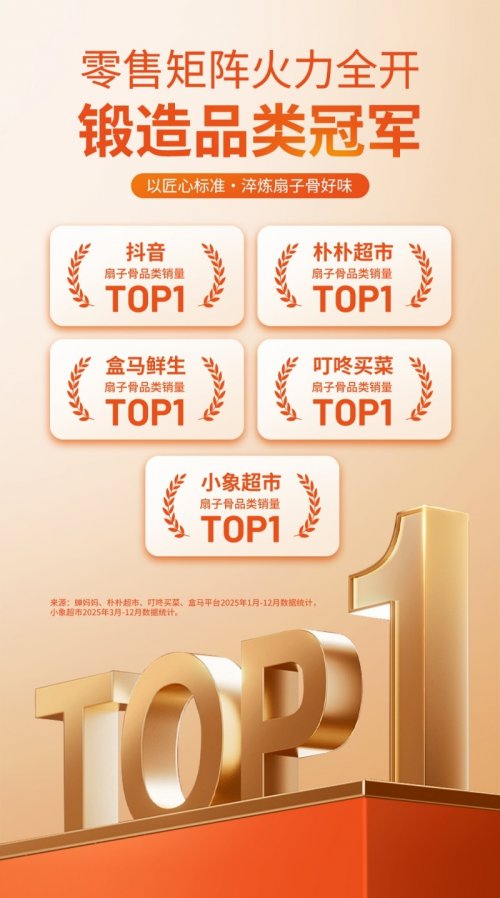 核心提示:時間回溯至2018年前后,扇子骨作為豬肩胛骨部位的特色食材,雖兼具肉質鮮嫩、適配煲湯、煎炸、燒烤等多元烹飪場景的天然優勢,但彼時市場認知度低迷,工業化加工產品稀缺,細分賽道處于相對空白狀態。近日,全球權威增長咨詢機構弗若斯特沙利文出具的《2025年中國扇子骨市場獨立研究報告》正式確認,在2020年11月至2025年10月期間,如意三寶扇子骨連續五年全國銷售額第一。這份覆蓋中國內地各渠道、經多維度數據交叉驗證的權威結論,不僅夯實了如意三寶在扇子骨品類的話語權,更折射出在行業從規模擴張向高質量發展轉型的關鍵期,如意三寶以用戶需求為核心、以品質創新為根基的核心競爭力構建邏輯。