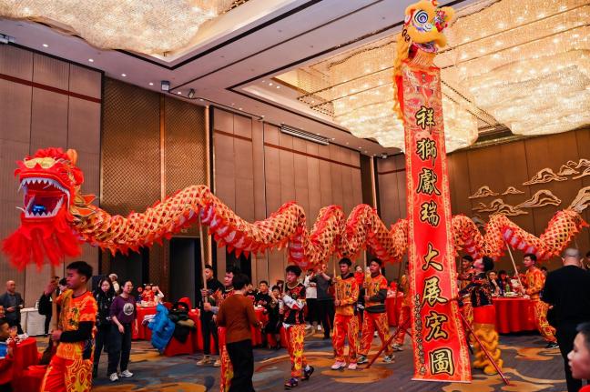 晚宴開始前,一場震撼人心的舞龍舞獅表演將拉開序幕。龍舞九天,獅躍四海,在鼓點(diǎn)的伴奏下,舞者們以精湛的技藝,將龍的威嚴(yán)與獅的勇猛展現(xiàn)得淋漓盡致,瞬間點(diǎn)燃了現(xiàn)場的熱情,為您的新年討個好彩頭,寓意著新的一年里,家庭和事業(yè)都將蒸蒸日上,順風(fēng)順?biāo)?/p>