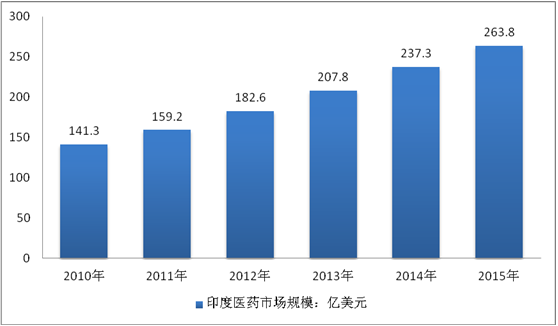 核心提示:智研咨詢發布的《2016-2022年中國醫藥行業運營監測與發展前景咨詢報告》顯示,2009年印度醫藥市場的規模為141億美元,2015年增長至263.8億美元。另外,印度為繼續保持增長努力,到2020年也有可能達到700億美元。&ldquo中經先略數據中心發布的《2016-2022年中國醫藥行業運營監測與發展前景咨詢報告》顯示,2009年印度醫藥市場的規模為141億美元,2015年增長至263.8億美元。另外,印度為繼續保持增長努力,到2020年也有可能達到700億美元。“金磚四國”(巴西、俄羅斯、印度和中國)在未來10年將成為醫藥市場的領頭羊。